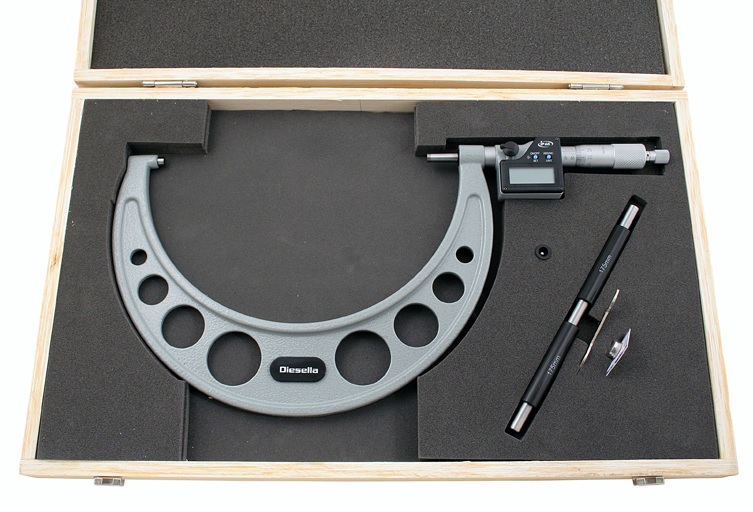 Digital Bygelmikrometrer skyddsklass IP65 med automatisk avstängning, mm/tum, nollställning, data hold mm.. Avläsning 0,001 mm, noggrannhet +/- 0,005 mm. Inklusive inställningsmått. Enligt DIN 863.