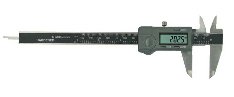 Digitalt skjutmått för vänsterhänta 0-150 mm, 5-siffrors LCD-display, Rostfritt stål med 40 mm långa käftar, Avläsning 0,01 mm, noggrannhet +/- 0,03 mm. Omställbart mm/tum, DIN 862. I plastlåda.