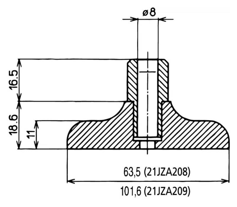 Djupmåttanslag 63,5x16 mm för indikatorklockor med 8 mm skaft. Levereras utan låsskruv för anslag/mätur (artikel 21JAA269)