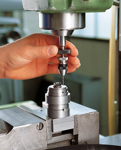 För framställning av mycket små hål, 0-1,5 mm, även på större maskiner. Manövrering med hjälp av kullagrad hållarring, fjäderåtergång. Skaft morsekona 1, kona B6. Mått L1 82 mm, L2 96 mm, d 30 mm. Borrslaglängd 20 mm. Fabrikat Albrecht FBH. Borrchuck ingår ej