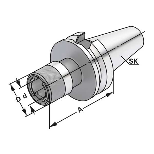 Gängchuck BT50 (JIS B6339, MAS-BT, form AD) utan längdkompensering för maskiner med synkroniserad gängning och invändig kylning. Mått A 95 mm, D 54 mm, d 31 mm. För gänginsatser storlek 2, kompatibel med system Bilz.