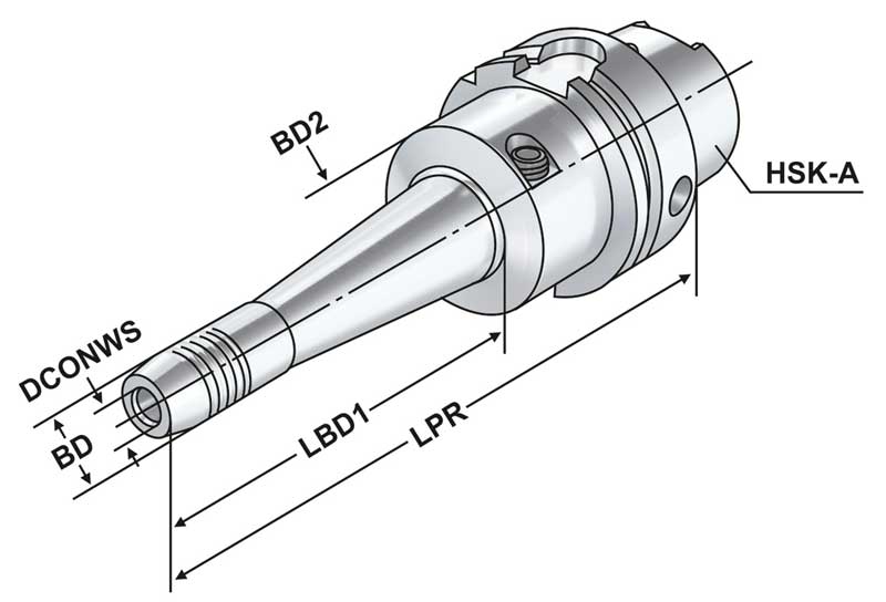 Slimmad hydraulchuck HSK-A 63 (ISO 121164-1/DIN 69893-1) för verktyg med 6 mm skaft. Balanserad G2,5 - max 25000 rpm. Rundgångsnoggrannhet <= 0,003 mm. Mått LPR 160 mm, BD 16 mm, BD2 50 mm, Spännlängd (LSCX) 37 mm (justerbart 10 mm), LBD1 103 mm, Nyckelvidd 5 mm. Insexnyckel ingår ej. För invändig kylning.