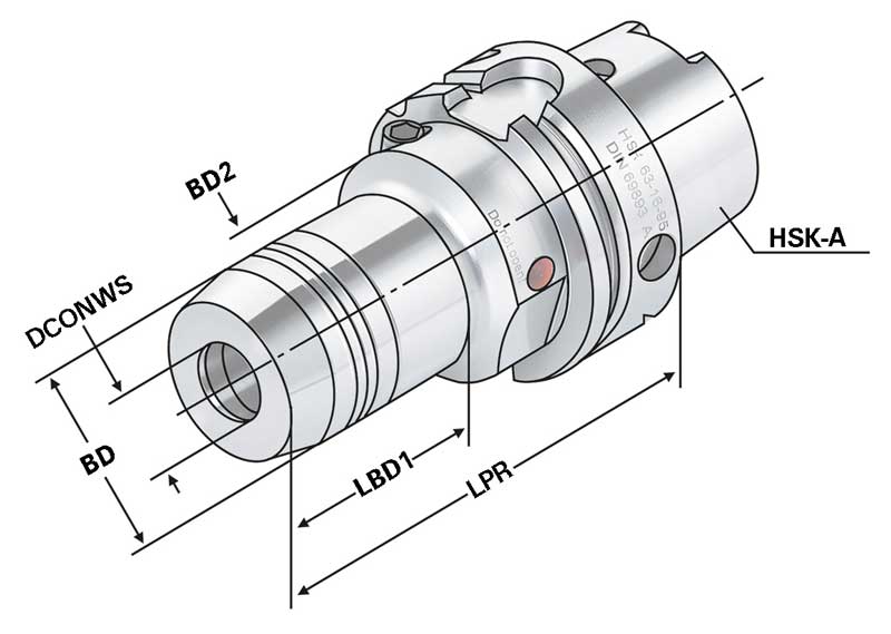 Hydraulchuck HSK-A 63 (ISO 121164-1/DIN 69893-1) för verktyg med 10 mm skaft. Balanserad G2,5 - max 25000 rpm. Rundgångsnoggrannhet <= 0,003 mm. Mått LPR 85 mm, BD 30 mm, BD2 50 mm, Spännlängd (LSCX) 42 mm (justerbart 10 mm), LBD1 39 mm, Nyckelvidd 5 mm. Insexnyckel ingår ej. För invändig kylning.