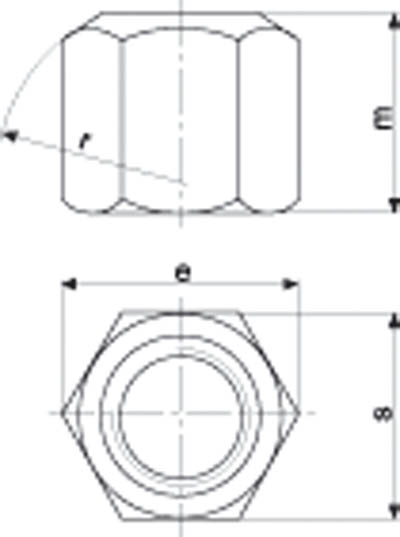 Mutter med rundad ände i seghärdad 10.9-kvalitet, fabrikat AMF. Nyckelvidd (s) 17 mm (gammal DIN-standard), höjd (m) 15 mm.