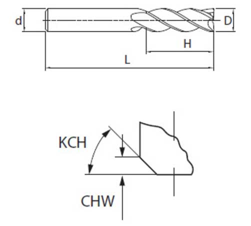 4-skärig borrande pinnfräs HM PVD-belagd för universell användning (stål, rostfritt och gjutjärn bl.a.). Skärdiameter 8 mm, skärlängd 12 mm, totallängd 58 mm, skaftdiameter 8 mm (tolerans h6), hörnfas 45° höjd 0,1 mm. Spiral 30°. Enligt 6535-HB (Weldon-skaft). Fabrikat ZCC-CT.