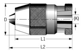 Chuck av högsta kvalitet med hög rundgångsnoggrannhet (0,04 mm) enligt DIN ISO 10888. Spännområde 1-13 mm med B12-kona. Diameter 50 mm, längd öppen 90,5, stängd 103 mm. För högerrotation.