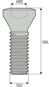 Reservskruv SECO modell C02506-T07P, artikelnummer 02440215 för stålhållare av S-typ med vändskär CCMT0602/DCMT0702/RCMT 0602 m. fl. HCA Försänkningsvinkel 60.0 grader, HD Huvuddiameter 3.6 mm, HH Huvudhöjd 0.8 mm, HSD Hexagonal sockel diameter 07IP (Torx plus), OAL Totallängd 6.3 mm, TDZ Gängdiameter storlek M2.5. TQ Åtdragningsmoment 0.9 Nm.