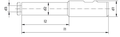 Slitsfräshållare med cylindriskt weldonskaft. För 32 mm slitsfräs med håldiameter (d3) 8 mm. Längd (l1) 110 mm, skaft (d1) 20 mm. Mått d2 16 mm, I2 53 mm