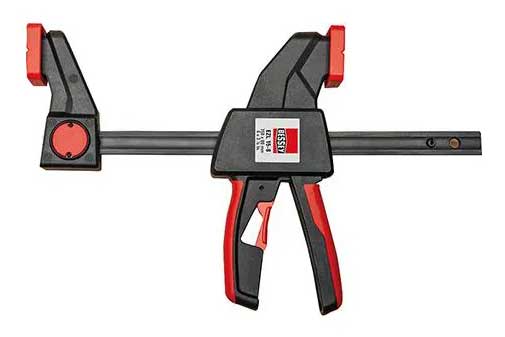 Snabbtving/enhandstving med skena av specialstål 18x5 mm, fast och rörlig bygel av slag- och brottfast polyamid. Spännkraft 2,7 kN. Vändbara byglar utan verktyg. Spännvidd 600 mm invändigt, 160-750 mm utvändigt, spänndjup 80 mm.