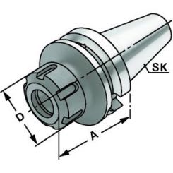 Spännhylschuck BT50 (JIS B6339, MAS-BT form AD/B) för ER25-hylsor, med hög rundgångsnoggrannhet (0,003 mm). Balanserad G6,3 - max 15000 rpm. A = 160 mm, D = 42 mm. Nyckel ingår ej. För invändig kylning genom spindel eller fläns..
