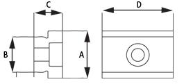 För GT-skruvstycken, för fräsbord med 14 mm T-spår. Mått A 14 mm, B 16 mm, C 10 mm, D 25 mm. Med skruv M5x10. Tolerans h6/h7. 2 st/förpackning.