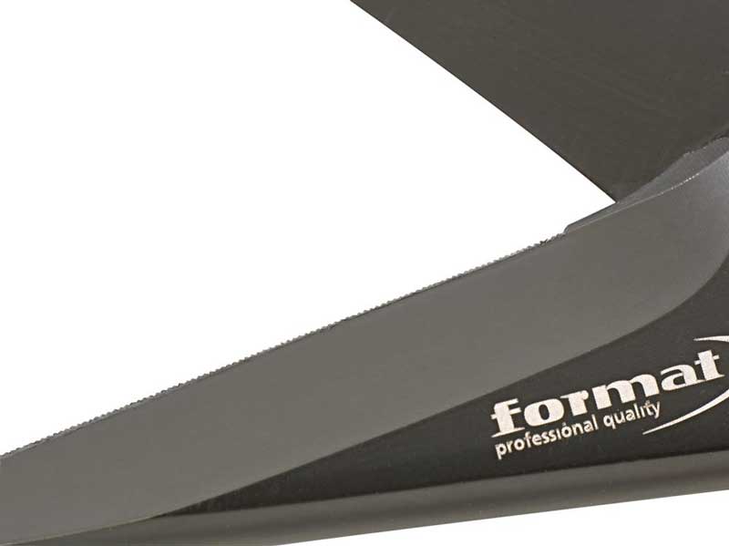 Kraftig universalsax med rostfria skär, fabrikat Format. Skänklar av aluminium med gummering. Längd 195 mm. Skärlängd 54 mm. För papper, papp, läder m.m.