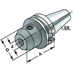 Weldonhållare BT30 (JIS B6339, MAS-BT, form AD) för verktyg med 18 mm skaft, med hög rundgångsnoggrannhet (0,003 mm). Balanserad G6,3 - max 15000 rpm. A = 63 mm, D = 50 mm. För invändig kylning genom spindel.
